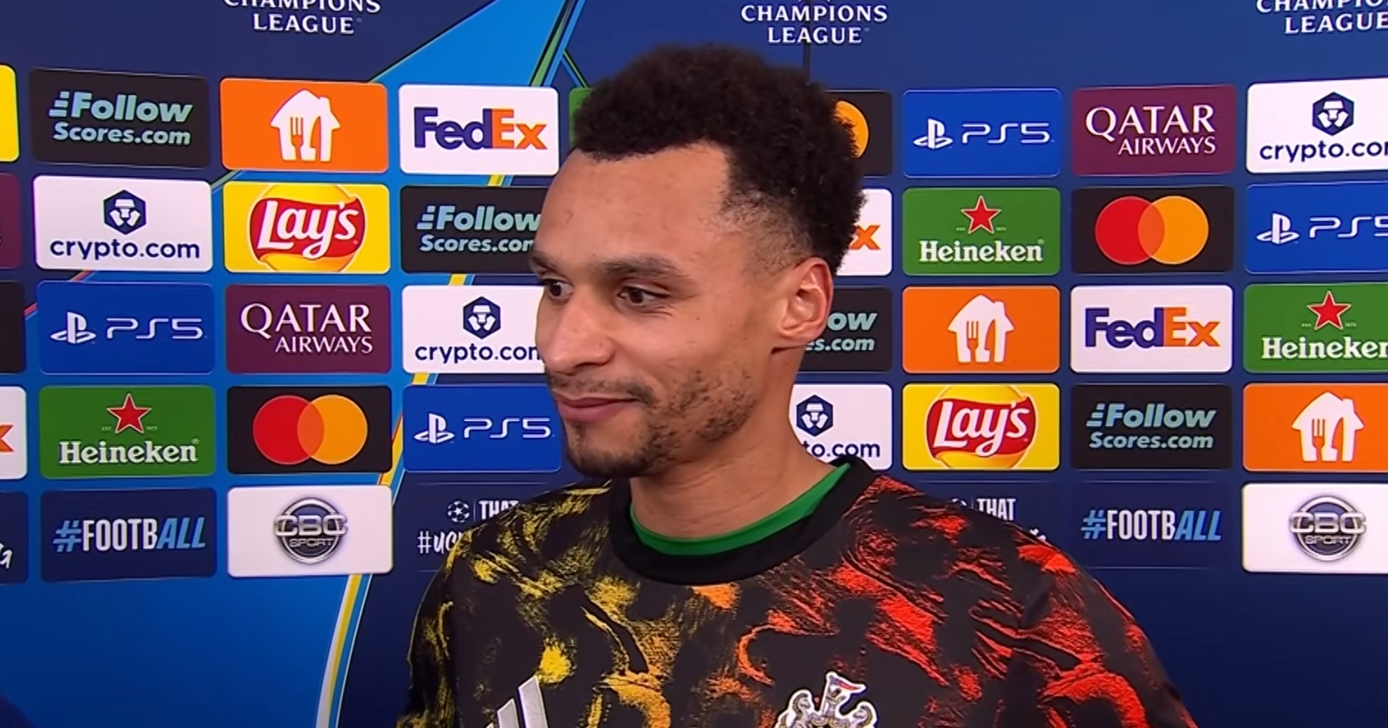 在客场6-1战胜卡拉巴赫的赛后,本场比赛打入一球的纽卡前锋雅各布-墨菲接受了CBS体育的采访。